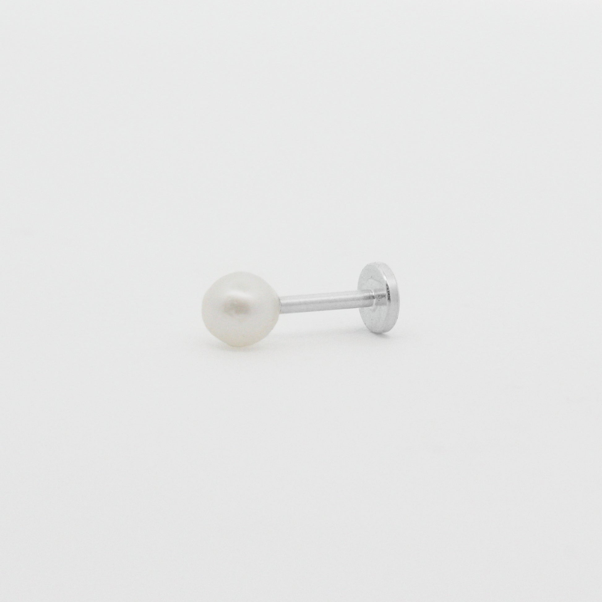 Sterling Silver Saltwater Pearl Flat Back Stud: Single 18 Gauge Hypoallergenic Labret, Comfort Labret for Helix, Conch, Tragus, and Lobe Piercings