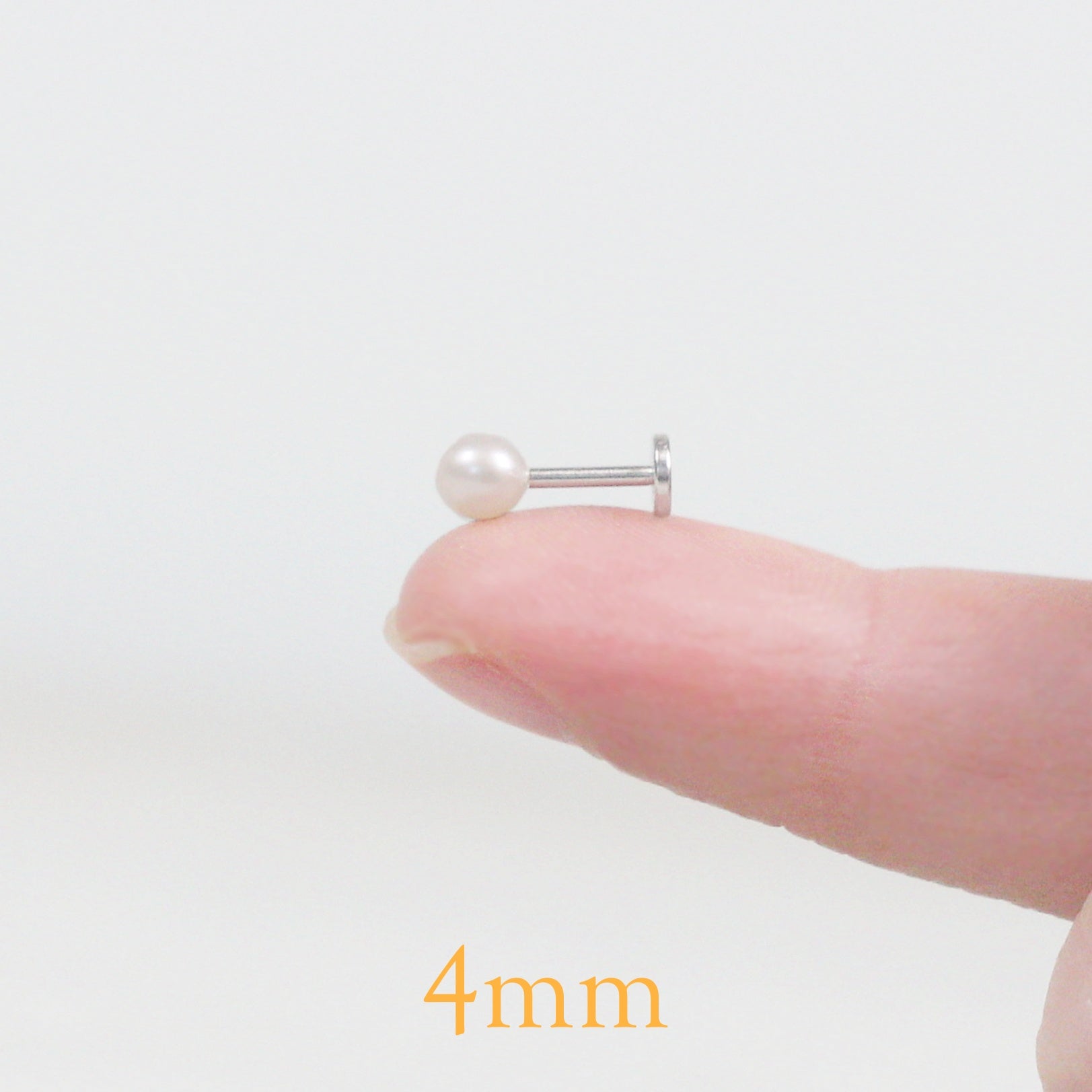 This hypoallergenic 18G labret flat back stud can be made with two different saltwater pearl sizes: A large 7mm pearl or smaller 4mm pearl.